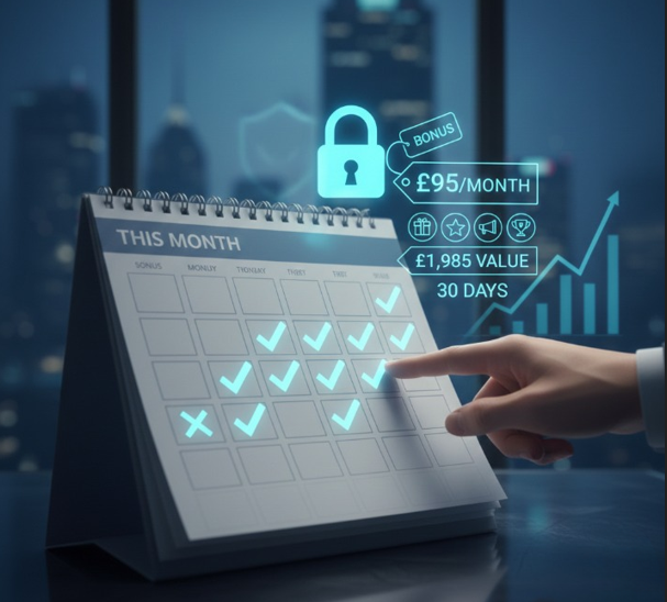 And a note on pricing: £95/month is our launch price. As our customer base grows and results compound, this price will increase. If you start now, you lock in the current rate.