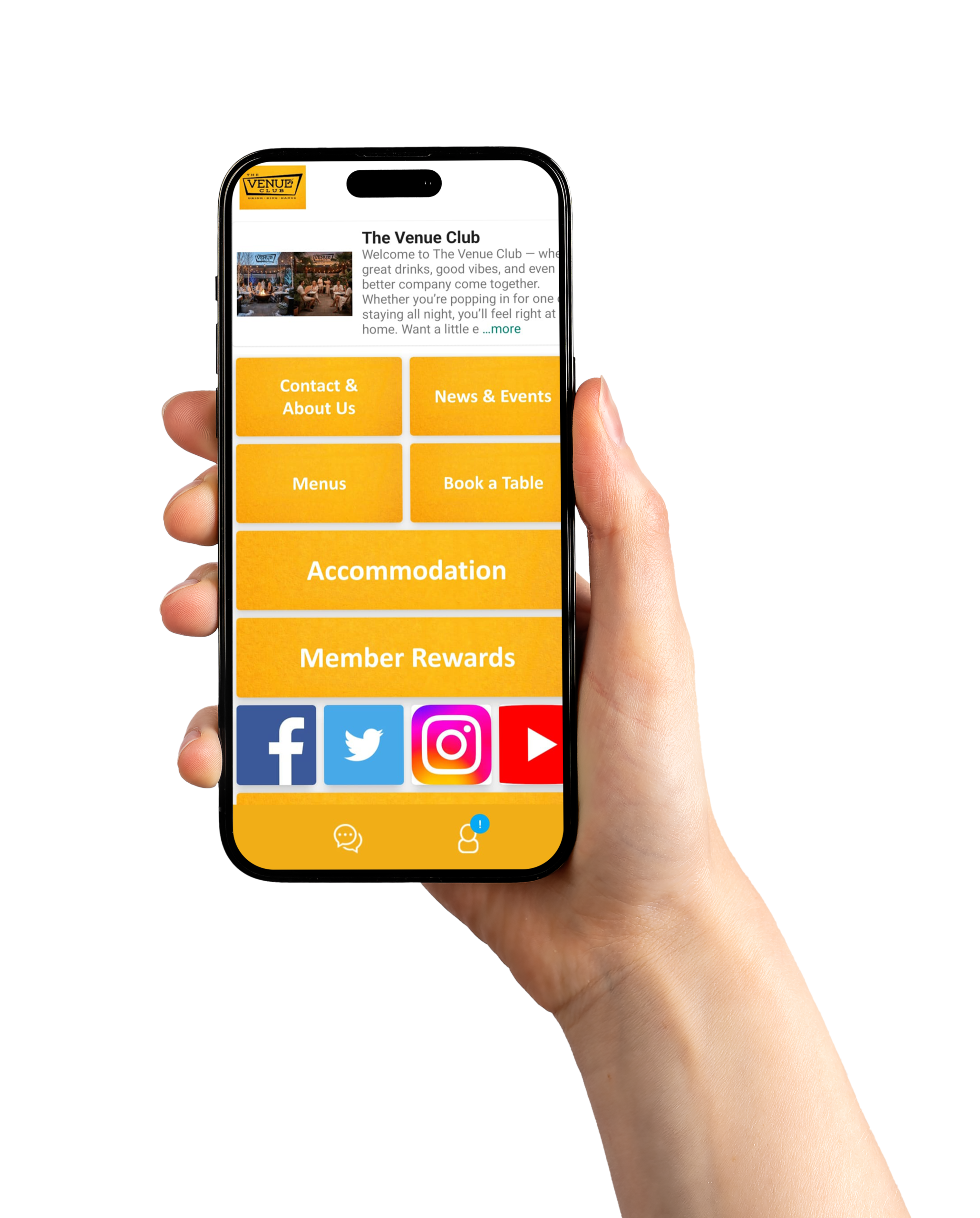 menus, events, socials, reviews — all in one place inside your app